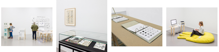 The second part of the exhibition explores the development and reorientation of signs, starting with an artistic work of Harun Farocki and the famous pictograms by Otl Aicher for the Summer Olympics Munich in 1972. These infographics and pictograms communicate without written language, a more radical attempt is to fully replace written language with an image language. The LoCoS language by Yukio Ota is easy to learn and has the goal to bridge global communication, while the artistic work of Pati Hill, Proposal for a Universal Language of Symbols, is inspired by pictographs invented by her bilingual daughter who, as a child, struggled with the grammar of English and French. Warja Lavater transformed fairy-tales into symbolic landscapes and Wolfgang Schmidt’s Signs of Life anchor the exhibition with a gigantic figure looking over the scene.
